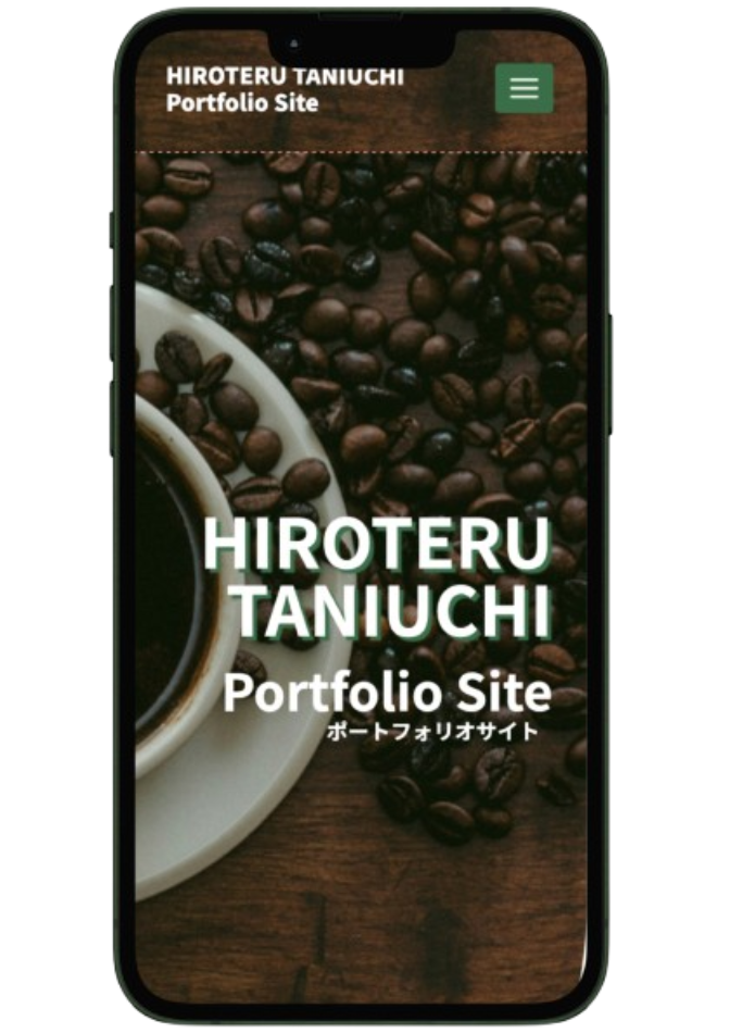 私のポートフォリオサイトです。カフェのような落ち着いた配色と、伝えたい情報をわかりやすくまとめました。